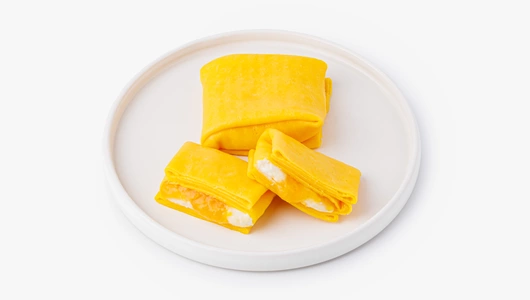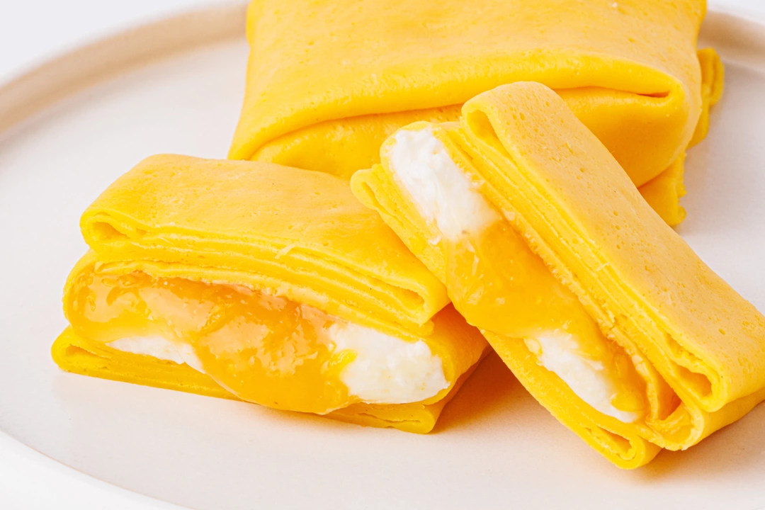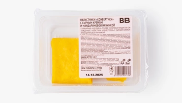 Яркие тонкие блинчики-конвертики сразу привлекают внимание своим солнечным цветом. А внутри нежного теста с лёгким ванильным ароматом — дуэт начинок: сладкая мандариновая основа с яблочным пюре и воздушный крем из творожного сыра. Налистники можно слегка подогреть, чтобы крем стал нежнее, а мандариновый вкус раскрылся ярче. Подойдут для уютного чаепития или сладкого завершения ужина, поднимая настроение и даря ощущение праздника даже в самый обычный день.