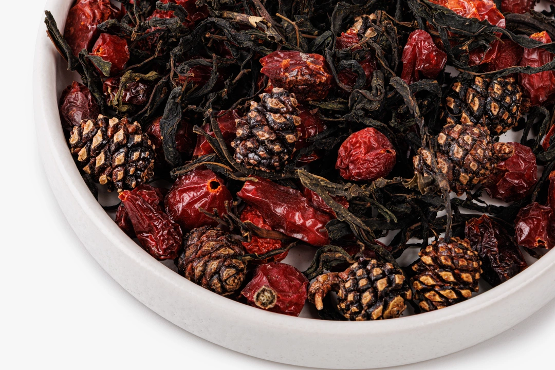 Ароматный чайный напиток с Алтая обладает мягким травяным вкусом с лёгкой хвойной ноткой. Это букет из ферментированных листьев кипрея, сушёных плодов шиповника и цельной сосновой шишки, собранных в экологически чистом алтайском регионе. Иван-чай даёт цветочно-травяные нотки, шиповник добавляет лёгкую кислинку, а сушёная шишка — хвойный аромат и смолистую глубину. Получается густой настой с тёплым, чуть медовым ароматом. Подойдёт для вечернего чаепития — согревает и настраивает на спокойный лад. Рассыпной чай можно заваривать несколько раз, наслаждаясь меняющимися оттенками вкуса.