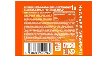 Напиток газированный Добрый Апельсин с пониженной калорийностью 1 л / Супермаркет