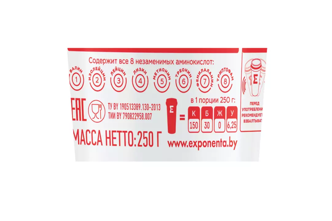 EXPONENTA HIGH-PRO – обезжиренный кисломолочный напиток с высоким содержанием белка, который помогает эффективно восполнить норму белка, быстро насыщает и надолго избавляет от чувства голода. Рекомендуется всем, кто заботится о себе!