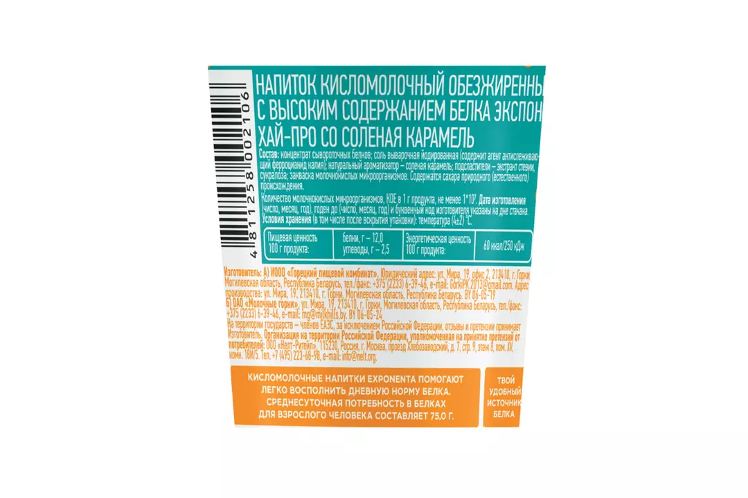 Напиток кисломолочный Exponenta High-pro Соленая карамель 250 г / Супермаркет