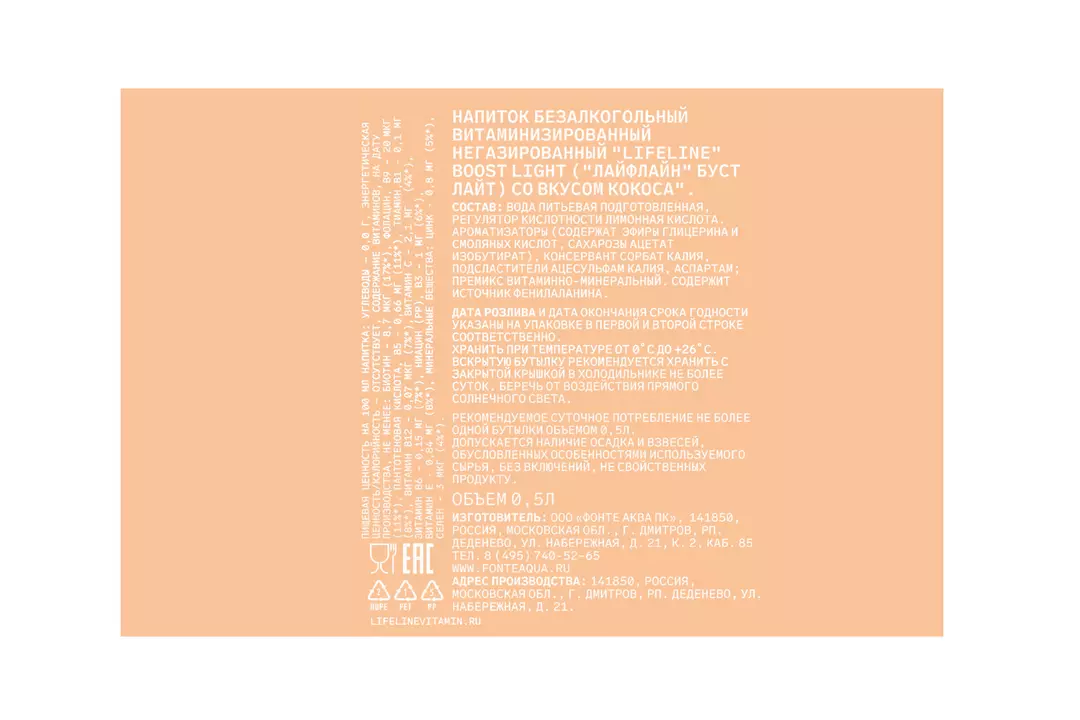 Напиток Lifeline Boost Light витаминизированный со вкусом Кокоса негазированный 500 мл / Супермаркет