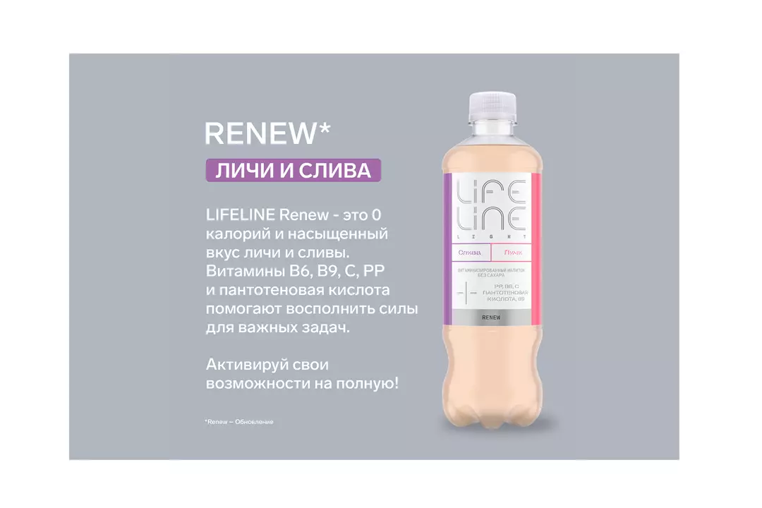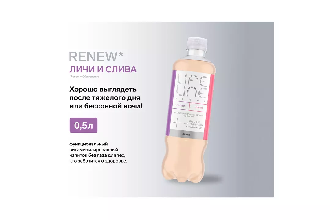 Напиток Lifeline Renew Light витаминизированный со вкусом Личи и Сливы негазированный 500 мл / Супермаркет