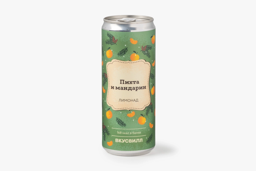 Газированный лимонад с необычным сочетанием хвойной свежести пихты и сладости спелого мандарина. Натуральный экстракт пихты придаёт напитку смолистые нотки, а концентрированный мандариновый сок создаёт фруктовую основу вкуса. Напиток не содержит искусственных красителей. Возможно выпадение естественного осадка, что не влияет на качество. Объём 330 мл.