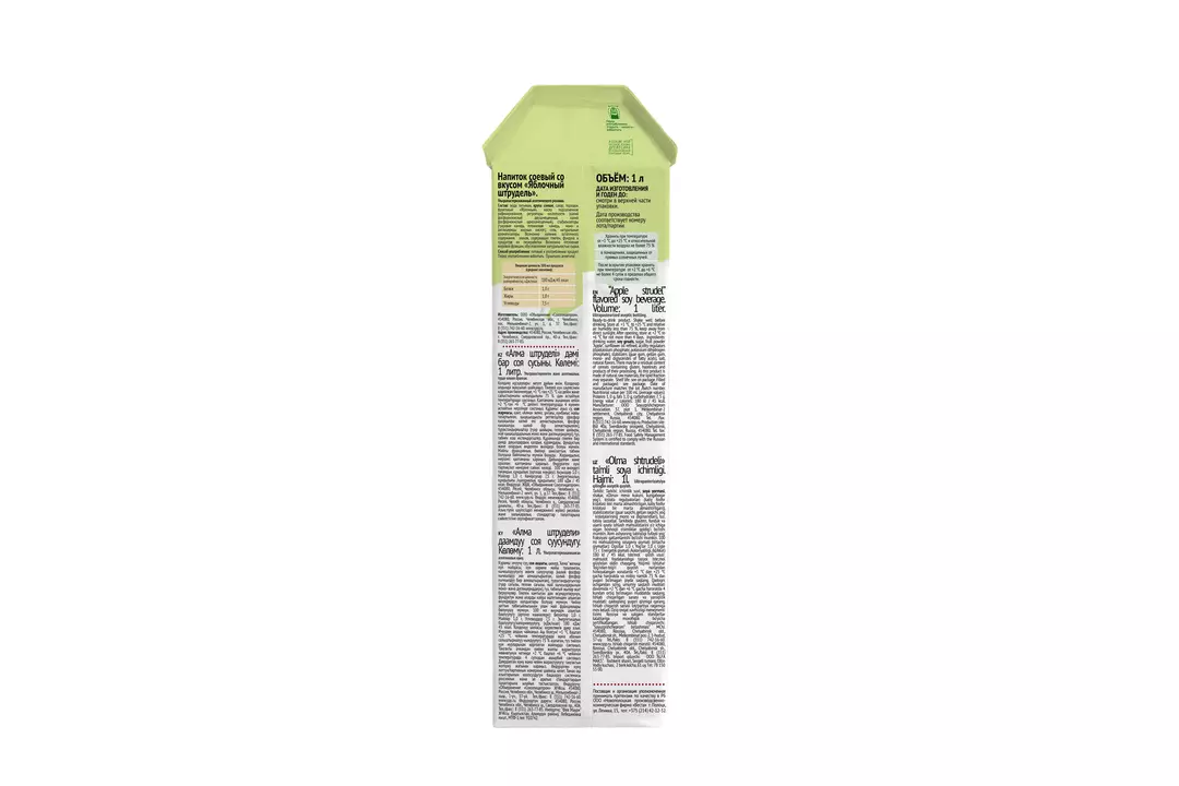 Напиток соевый со вкусом «Яблочный штрудель» Сочетание яблока, ароматной корицы и растительной основы рождает восхитительный вкус – яблочного штруделя. Так и хочется скорее его попробовать! Вкус яблочного штруделя подарит вам незабываемые ощущения и напомнит о домашнем уюте. Наслаждайтесь этим напитком в любое время дня, идеально подходит для завтрака и перекуса, для удовольствия и отличного настроения. Страна-производитель Россия