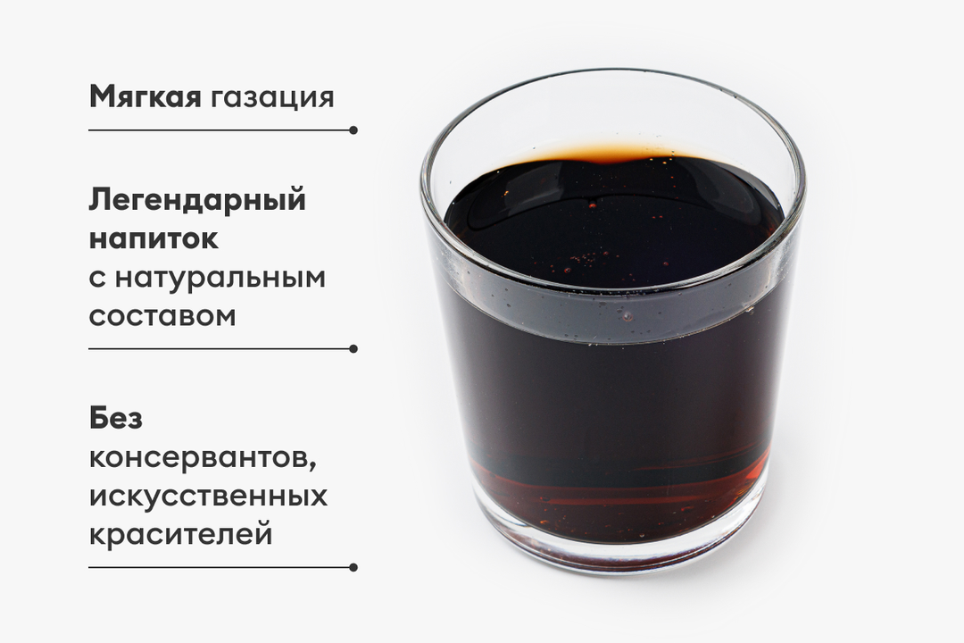 Освежающая Вкус-Кола с коротким натуральным составом: без консервантов и искусственных красителей. В ярком вкусе газировки соединились сладость, кислинка лайма, лёгкая терпкость чёрного чая и пряные ноты корицы. Особенно хороша с парой кубиков льда.