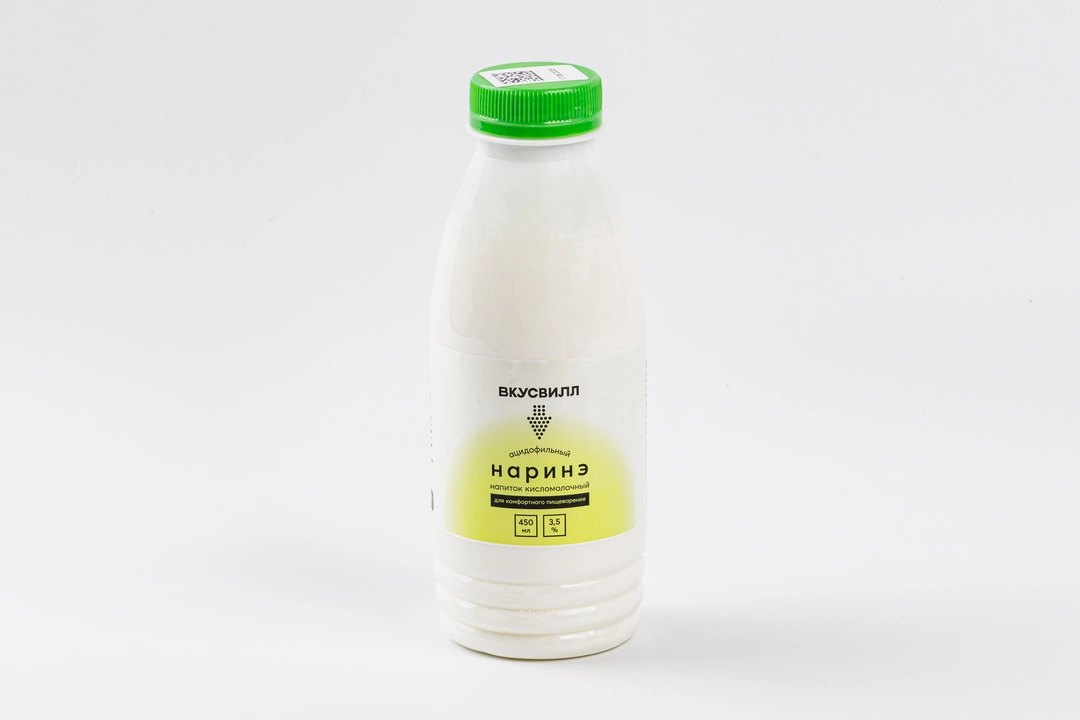 Кисломолочный напиток с лактобактериями для комфортного пищеварения. Консистенция умеренно густая, как у классического йогурта. Кислинка ощущается мягко, без резкости. В составе только нормализованное молоко и закваска «Наринэ», которая может оказывать положительное влияние на восстановление микрофлоры кишечника, повышение иммунитета. Объём 450 мл — оптимальный вариант для того, чтобы употребить напиток в течение дня.