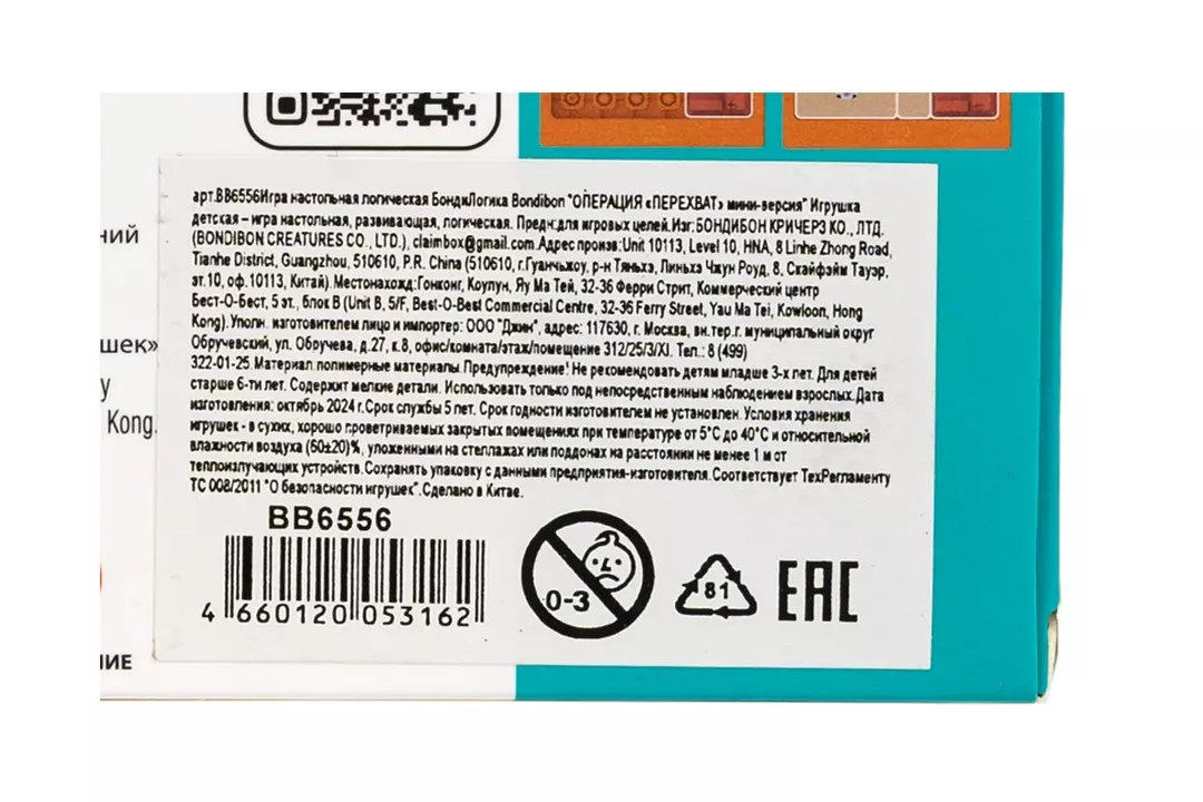 Настольная игра Bondibon Логическая Операция перехват мини-версия / Супермаркет
