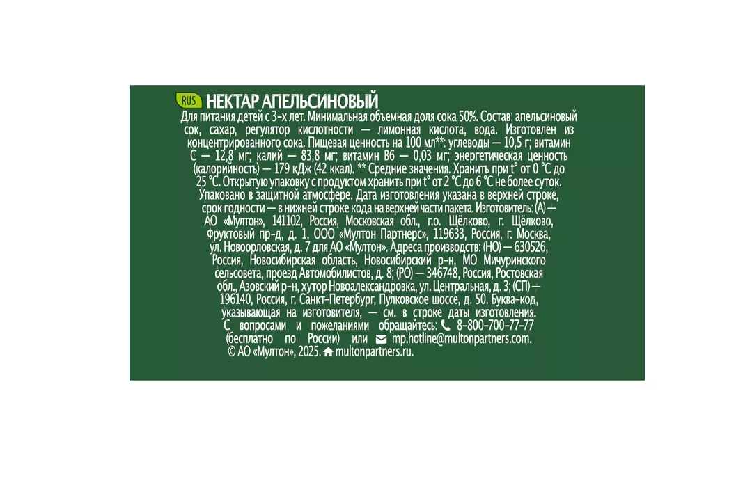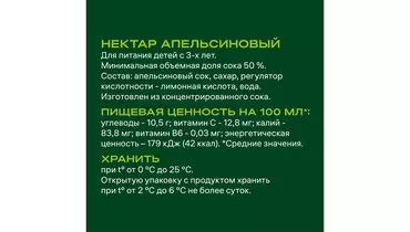 Добрый Апельсин нектар без консервантов и красителей в удобной упаковке для семейного обеда или ужина. Страна-производитель Россия