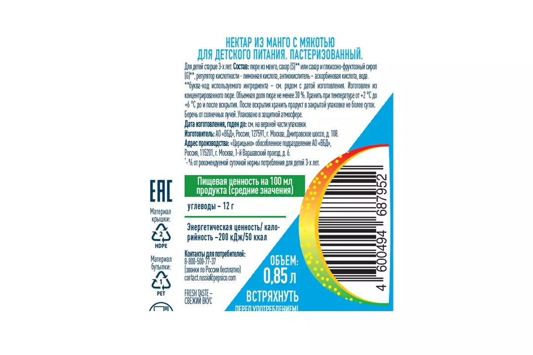 Нектар J7 Fresh Taste из манго с мякотью 850 мл / Супермаркет