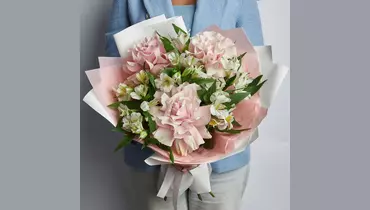 Нежный букет французские розы и альстромерия FMART by flowwow