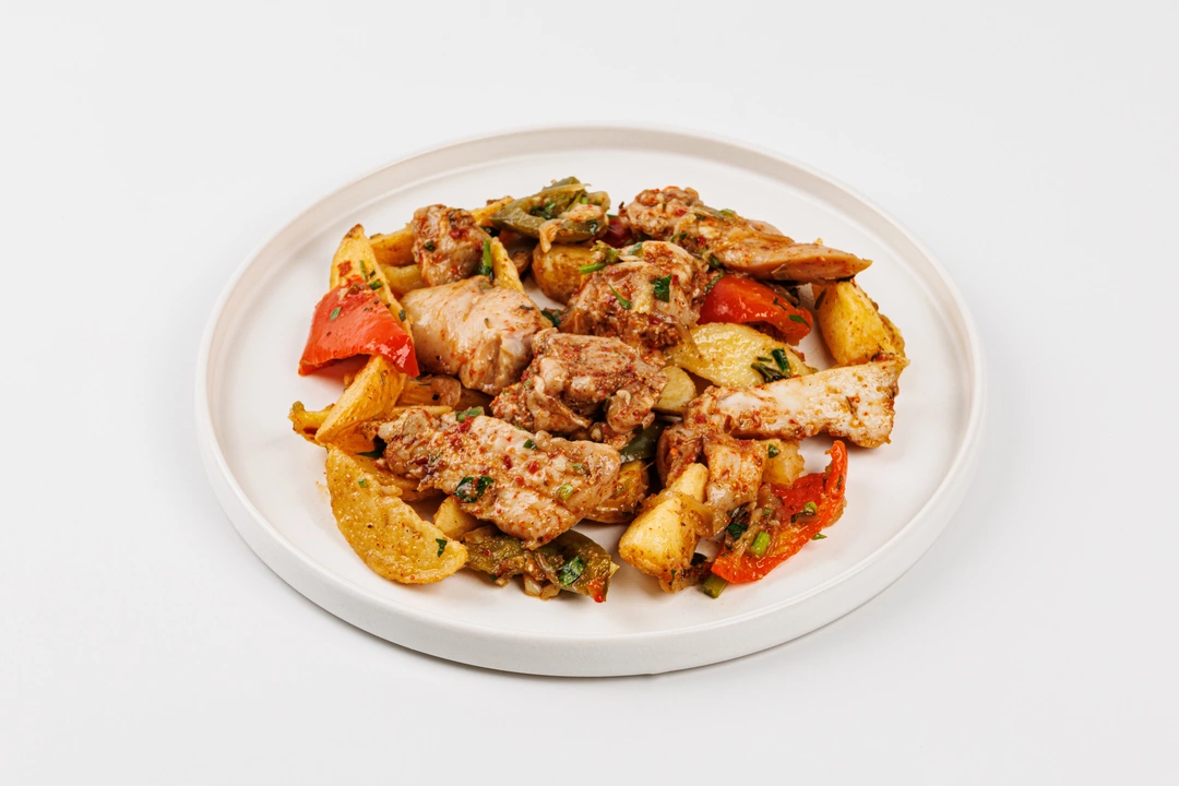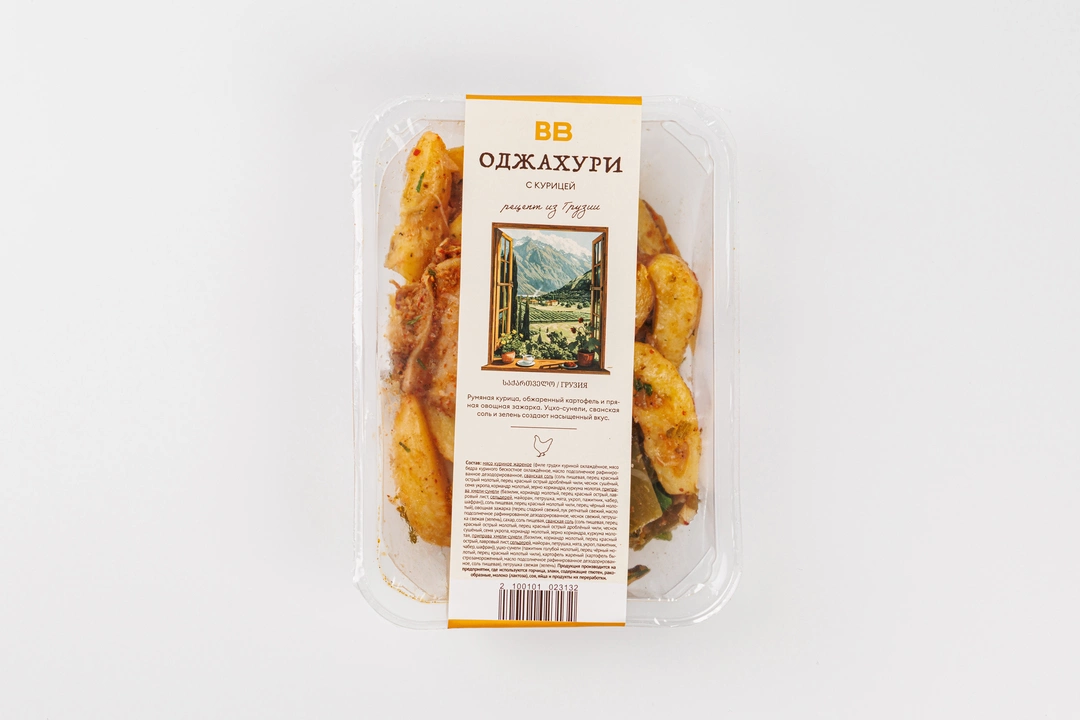 Сочные кусочки курицы обжарены с пряной сванской солью, а вместе с картофелем, сладким перцем и луком блюдо приобретает насыщенный вкус с лёгкой пикантностью. Специи добавляют характерные грузинские нотки: уцхо-сунели, кориандр, хмели-сунели и чеснок создают ароматный фон, на котором курица и овощи звучат особенно ярко. Одджахури подают горячим, и именно в этом виде оно лучше всего раскрывает свой колорит: простое по составу, но многогранное по вкусу блюдо, которое легко представить и в домашнем кругу, и на праздничном застолье в духе грузинской кухни.