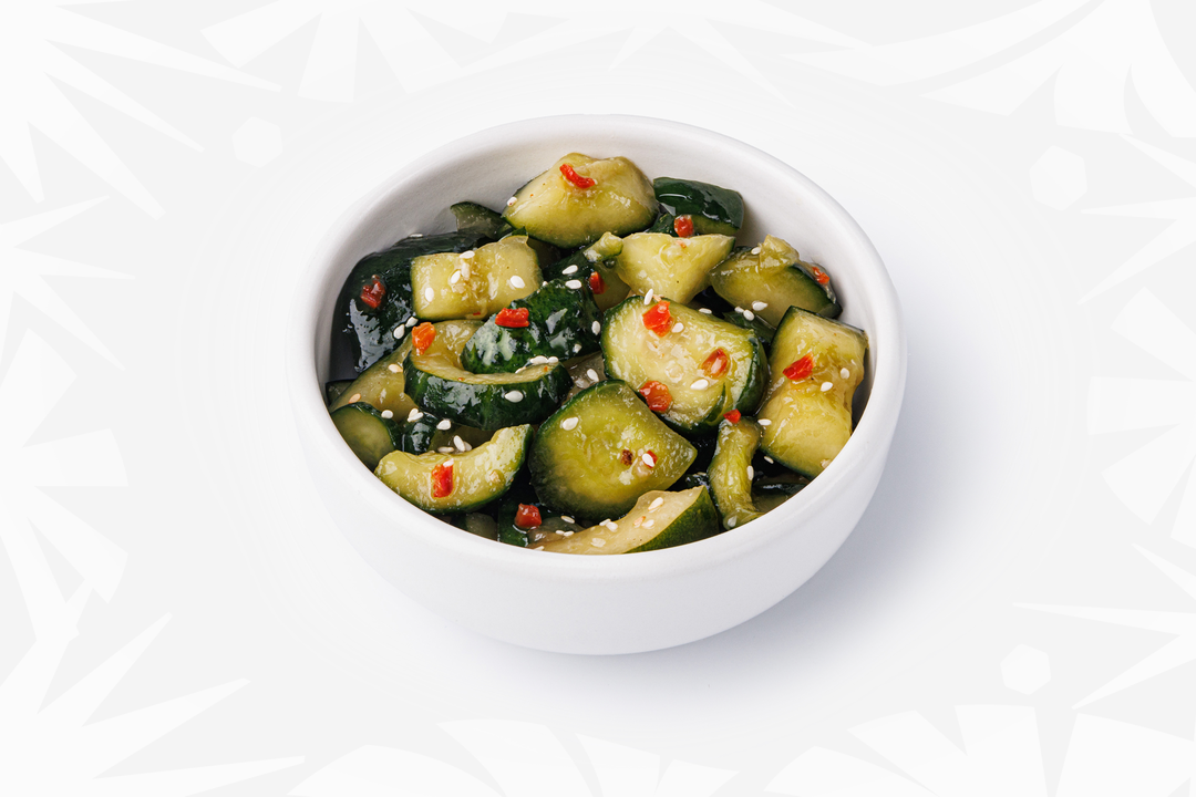 Необычная альтернатива малосольным огурчикам! Название у закуски говорящее: огурцы действительно бьют, ведь растрескавшиеся плоды лучше принимают заправку. И именно заправка с соевым соусом, кориандром и острым перцем привносит во вкус яркие азиатские нотки! Пикантные битые огурцы идеально сочетаются с мясом и отлично подойдут на роль не слишком калорийного перекуса.