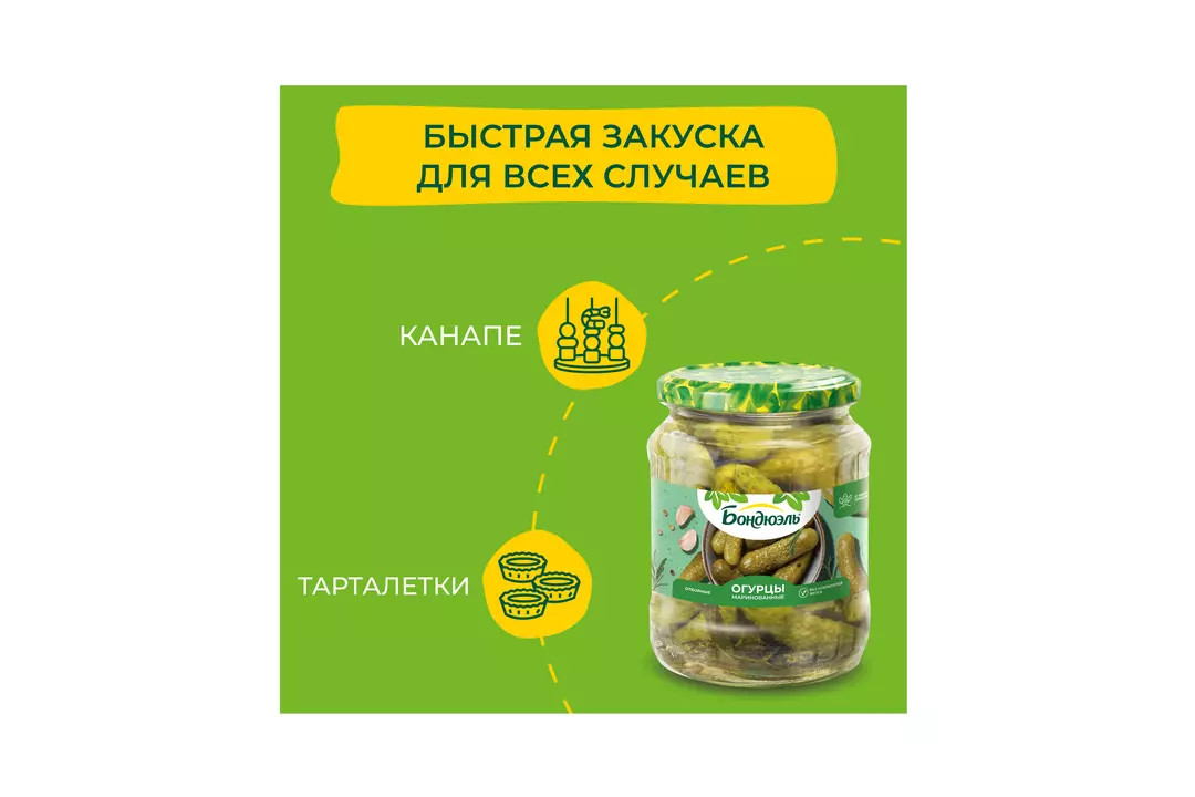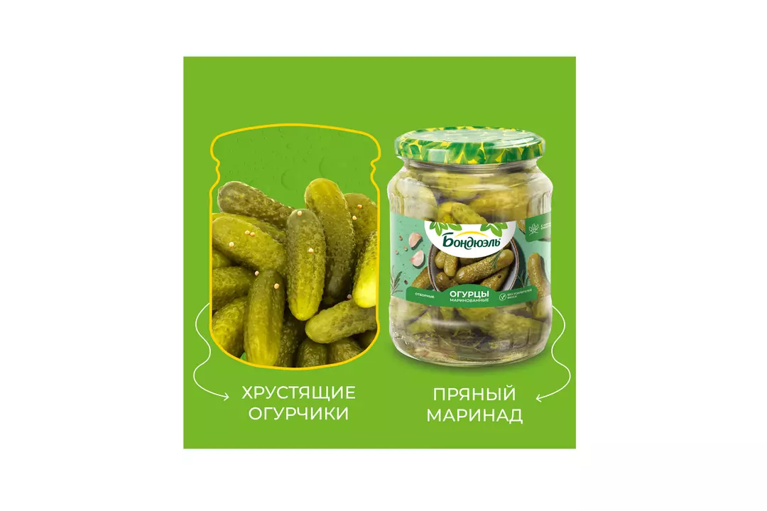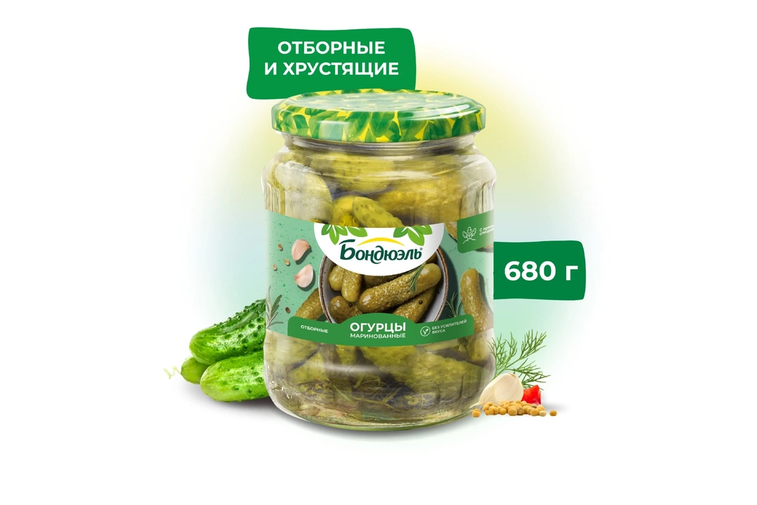 Огурцы Бондюэль маринованные (6-9) с/б 680 г