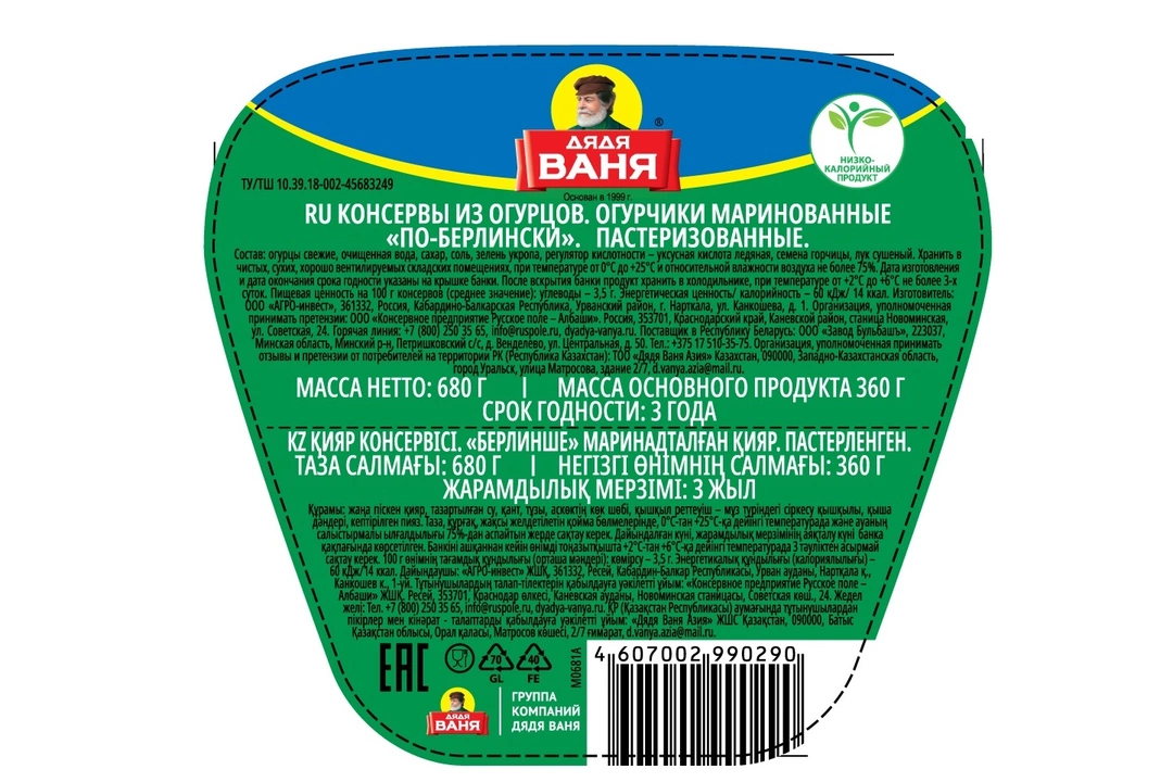 Настоящие грунтовые огурчики! Приготовлены с использованием уникальной рецептуры маринада. Огурчики от Дяди Вани 4 раза подряд удостоены звания «Товар года»! Масса основного продукта 360 г Страна-производитель Россия