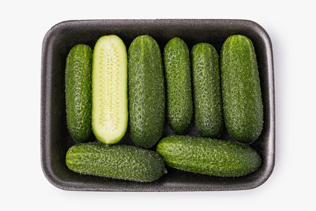 Свежие огурцы гибридного среднеспелого сорта. У них плотная мелкобугорчатая кожура тёмно-зелёного цвета. Сочные, сладковатые и ароматные. Без пустот внутри. Отлично подходят для аппетитных полезных салатов и для маринования.