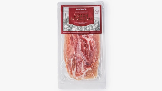 Выдержанный сыровяленый окорок с плотной текстурой и насыщенным, чистым вкусом. Десять месяцев созревания позволяют соли равномерно пропитать свинину и раскрыть её естественный аромат. Ломтики получаются упругими, с характерной суховатостью и долгим послевкусием. Такой окорок хорошо подойдёт для нарезки на закусочную тарелку, подачи с хлебом и оливковым маслом или как самостоятельный деликатес. Эталонный продукт для ценителей испанских традиций.