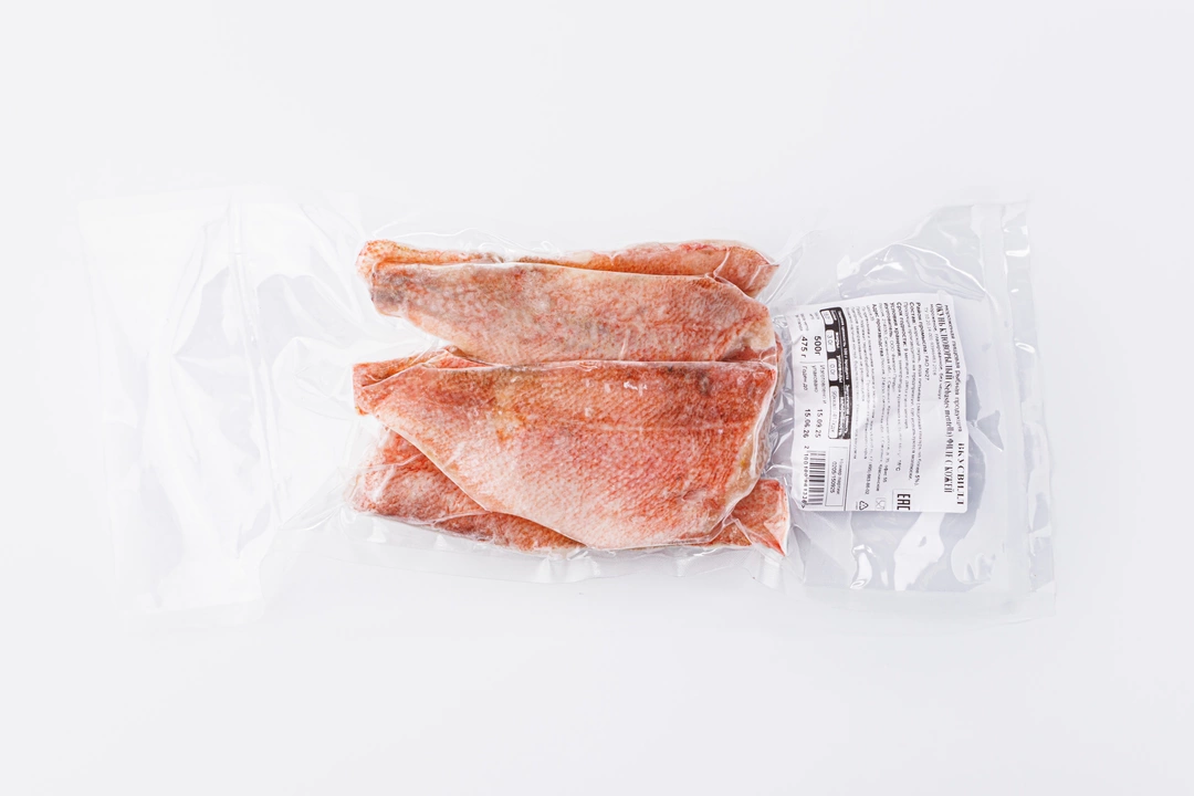 Замороженное филе дикого морского окуня. Ледяная глазурь составляет не более 5% и защищает продукт от пересыхания. Рыба получается аппетитной и сочной при любом способе приготовления. Главное — правильно разморозить, чтобы полностью сохранить структуру мяса и вкус. Для этого положите закрытую упаковку в ёмкость и оставьте на нижней полке холодильника до полной разморозки.