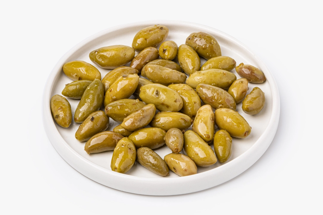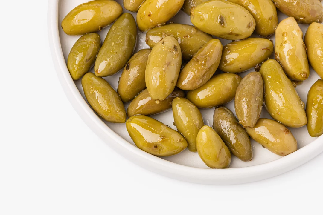 Оливки сорта Дольче с косточкой — плотные, с насыщенным вкусом и мягкой маслянистой текстурой. Залиты нерафинированным оливковым маслом с добавлением орегано, что даёт лёгкий травяной акцент. Вакуумная упаковка сохраняет свежесть и аромат. Подойдут для салатов, закусочных тарелок или как самостоятельный перекус. Масса основного продукта 110 г.