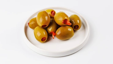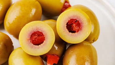 Крепкие зелёные оливки крупного калибра для ценителей контрастных вкусов. Косточки внутри нет — вместо неё сочный красный перец. Он органично дополняет яркий, с характерной кислинкой вкус оливок, придавая ему ненавязчивую сладость. Эти оливки прекрасно сочетаются с напитками, а также подходят для составления разнообразных закусочных тарелок, добавления в салаты и брускетты.