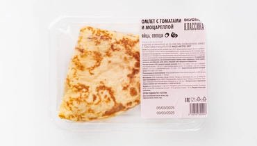 Омлет на молоке, приготовленный с кусочками спелых томатов и сливочно-нежной моцареллой. Сытный завтрак для любителей классики, который нужно лишь разогреть в микроволновке.