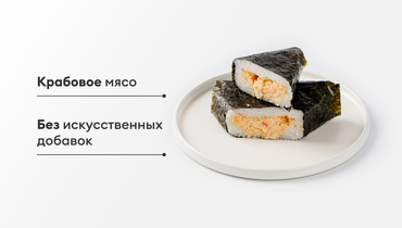 Сытный рисовый сэндвич с деликатесным мясом камчатского краба. Им удобно перекусить в дороге. Состав проверен: нет усилителей вкуса, консервантов и искусственных красителей