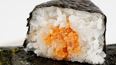 Аккуратный рисовый треугольник в тонком листе нори — необычное японское блюдо. Нежную слабосолёную сёмгу дополняет пикантный соус спайси. Рис приготовлен с маслом и получается пластичным, но не клейким. Майонез с томатной пастой и кунжутным маслом добавляет яркий острый акцент. Нори вносит едва уловимые морские ноты. Удобный формат позволяет взять закуску с собой, она сытная и не требует разогрева. Подойдёт любителям азиатской кухни.