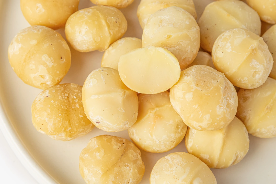 Калибр С1. Макадамия — это самый дорогой орех в мире, и не случайно. Ведь его запоминающийся вкус и аромат невозможно сравнить ни с чем другим. Скорлупка ореха пахнет карамелью и молочным шоколадом, а в его мякоти слышатся сладковатые ноты ванили и сливок. Никакого обмана: макадамию не обрабатывают подсластителями и ароматизаторами. Орехи можно добавлять в сладости и выпечку, но и сами по себе они могут заменить десерт.