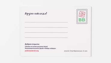 Тёплая открытка, созданная по рисунку подопечного благотворительного фонда «Подари подарок». Он оказывает поддержку нуждающимся семьям и создаёт для них условия для выхода из кризиса. Возможно, эта открытка — одна из причин глобального потепления, ведь она растопила не одно сердечко. Открытка пригодится на случай, когда просто слов недостаточно — или если вы понимаете друг друга без слов. Приобретая этот товар, вы вносите важный вклад в проект «Добрая полка». Он создан, чтобы оказать благотворительным фондам поддержку в продаже собственной уникальной продукции.