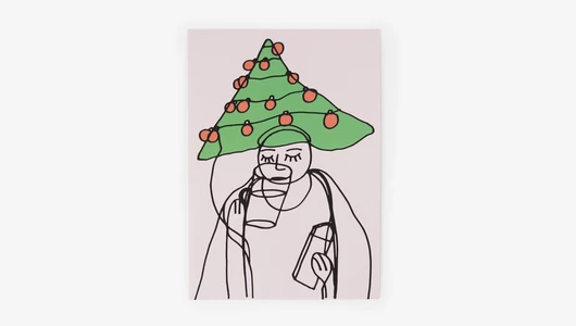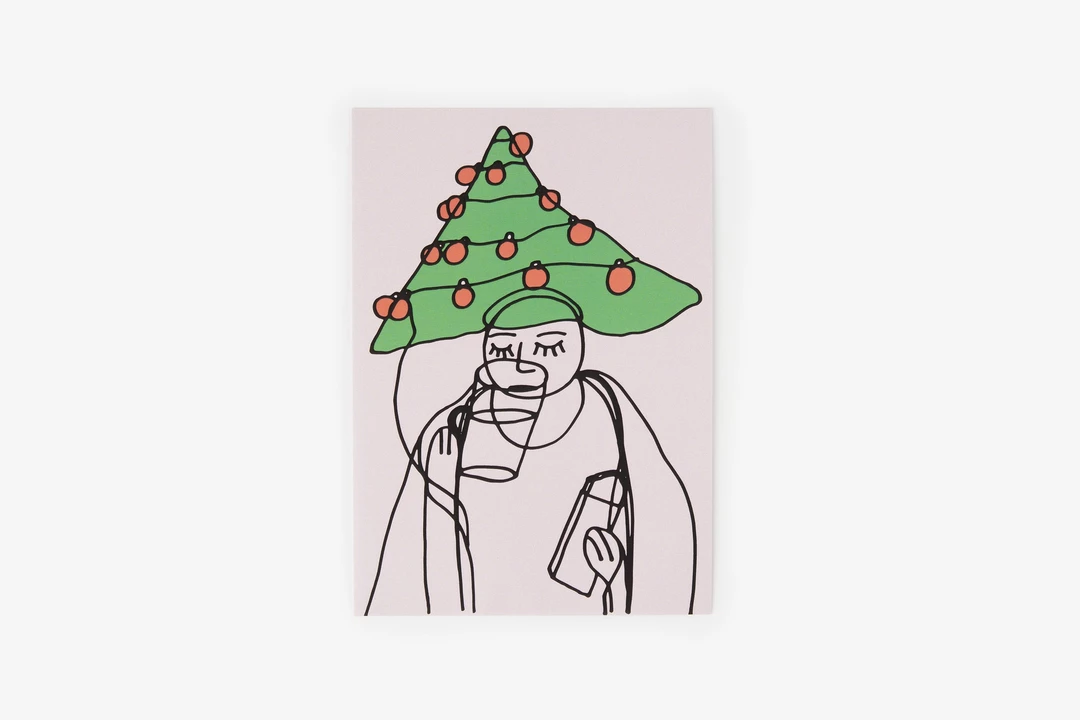 Открытка с необычным новогодним рисунком, где ёлка превращается в забавный головной убор, а плавные линии создают ощущение лёгкого праздничного хаоса. Такой выразительный сюжет подойдёт для тёплого поздравления — он вызывает улыбку и передаёт атмосферу подготовки к празднику, когда всё вокруг чуть взволнованно и очень по-домашнему. Рисунок создан художником инклюзивной мастерской «Простые вещи». Приобретая этот товар, вы вносите важный вклад в проект «Добрая полка». Он создан, чтобы оказать благотворительным фондам поддержку в продаже собственной уникальной продукции.