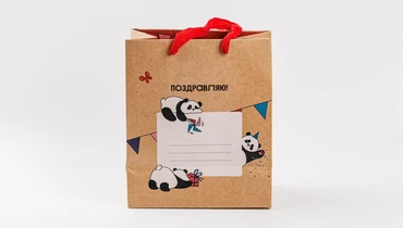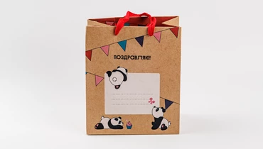 Подарочный пакет с изображением очаровательных панд сделан из плотной крафтовой бумаги. На нём предусмотрено поле, где можно будет написать ваши самые тёплые пожелания. Выручит в случае, когда до праздника остались считаные часы, а вам катастрофически не хватает времени на упаковку сюрприза. Благодаря забавному минималистичному дизайну, пакет подойдёт для упаковки детского подарка. Размер пакета 20,3 x 24 x 10,2 см.
