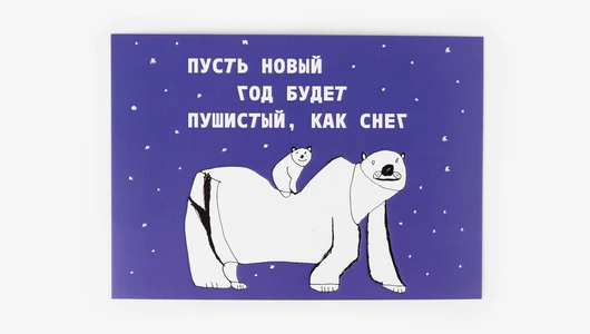 Мягкие линии иллюстрации и глубокий синий фон создают спокойное зимнее настроение — как вечер, когда падающий снег делает мир чуть тише и уютнее. Белый медведь с медвежонком на спине напоминают о тепле, которое появляется рядом с близкими, а надпись задаёт лёгкое и доброе пожелание на праздник. Такая открытка подойдёт для поздравления друзей, семьи или коллег — передаёт внимание и заботу без лишней торжественности. Рисунок создан художником инклюзивной мастерской «Простые вещи». Приобретая этот товар, вы вносите важный вклад в проект «Добрая полка». Он создан, чтобы оказать благотворительным фондам поддержку в продаже собственной уникальной продукции.