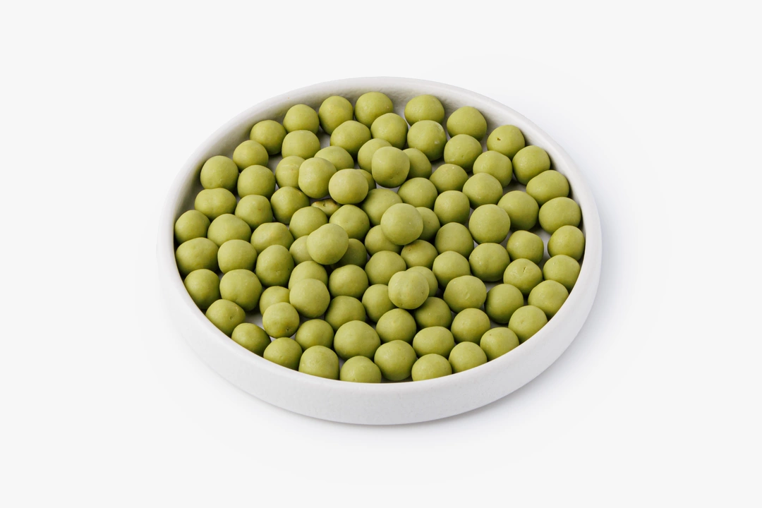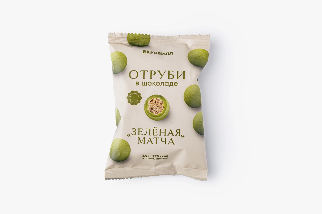 Воздушные пшеничные отруби, покрытые белым шоколадом с добавлением японского зелёного чая матча. Хрустящие внутри и чуть сливочные снаружи — это лёгкое лакомство с мягким вкусом и тонкой чайной горчинкой. Подойдут для небольшого перекуса или как необычное сладкое дополнение к кофе и чаю.