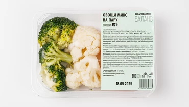 Цветная капуста и брокколи сохранили свежесть благодаря шоковой заморозке, а морковь добавила в ассорти немного сладости. Овощной микс — готовое решение для полезного гарнира без лишних хлопот. После паровой обработки брокколи остаётся чуть хрустящей, а цветная капуста становится особенно нежной. Ломтики моркови смягчаются, но вкус остаётся натуральным и сочным. Лёгкое витаминное блюдо можно разогреть в микроволновой печи или на сковороде.