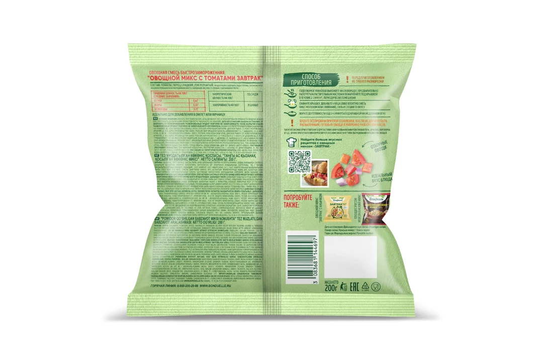 Овощной микс с томатами Бондюэль Завтрак замороженный 200 г / Супермаркет