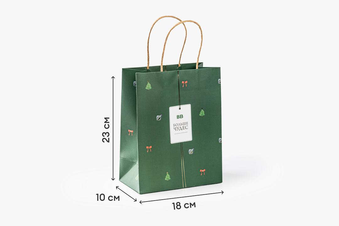 Плотный бумажный пакет с новогодним оформлением подойдёт для праздничных подарков любого формата — от косметики до сладостей. Яркий дизайн создаёт ощущение уюта и праздника, а ламинированная поверхность защищает бумагу от влаги и делает изделие более прочным. Удобные ручки выдерживают вес подарков, сохраняя аккуратный вид. Размер пакета 180×230×100 мм.