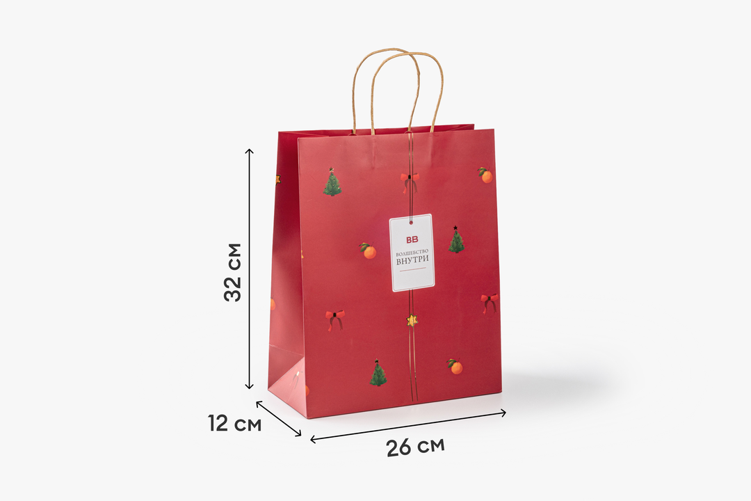 Плотный бумажный пакет с новогодним оформлением подойдёт для праздничных подарков любого формата — от косметики до сладостей. Яркий дизайн создаёт ощущение уюта и праздника, а ламинированная поверхность защищает бумагу от влаги и делает изделие более прочным. Удобные ручки выдерживают вес подарков, сохраняя аккуратный вид. Размер пакета 260×320×120 мм.