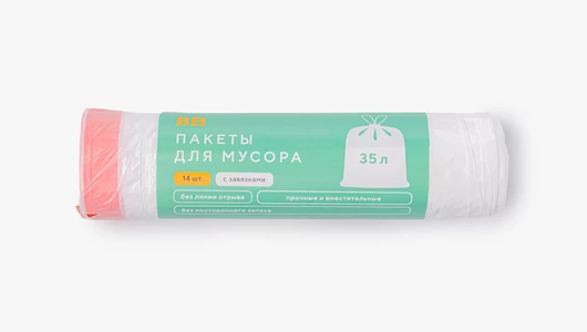 Пакеты с удобными завязками для хранения и утилизации бытовых отходов, изготовленные из плотного полиэтилена. Прочные, вместительные, без посторонних запахов.
