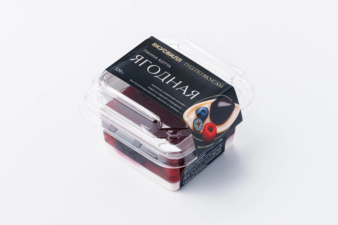 Классический десерт с нежной сливочной основой и ягодным топингом. Желе с цельными ягодами чёрной смородины, черники и малины делает вкус лакомства насыщенным и ярким, а лимонное пюре подчёркивает лёгкую кислинку.