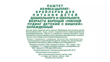 Сочетание нежного куриного филе и сладкой вишни формирует уникальный вкус мясного пудинга. Это не просто продукт для детей, но и настоящая гастрономическая находка, которая позволит насладиться едой с интересом! Страна-производитель Беларусь