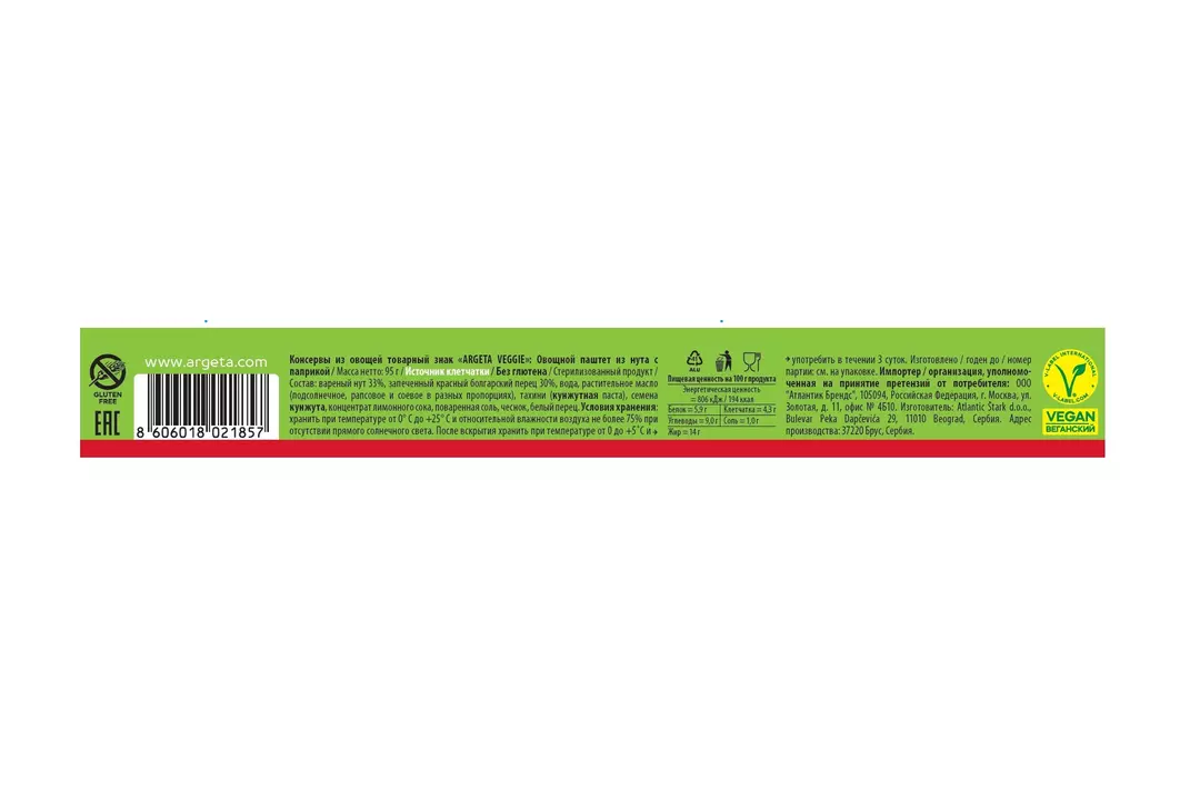 Паштет Argeta Veggie овощной из нута с паприкой 95 г / Супермаркет