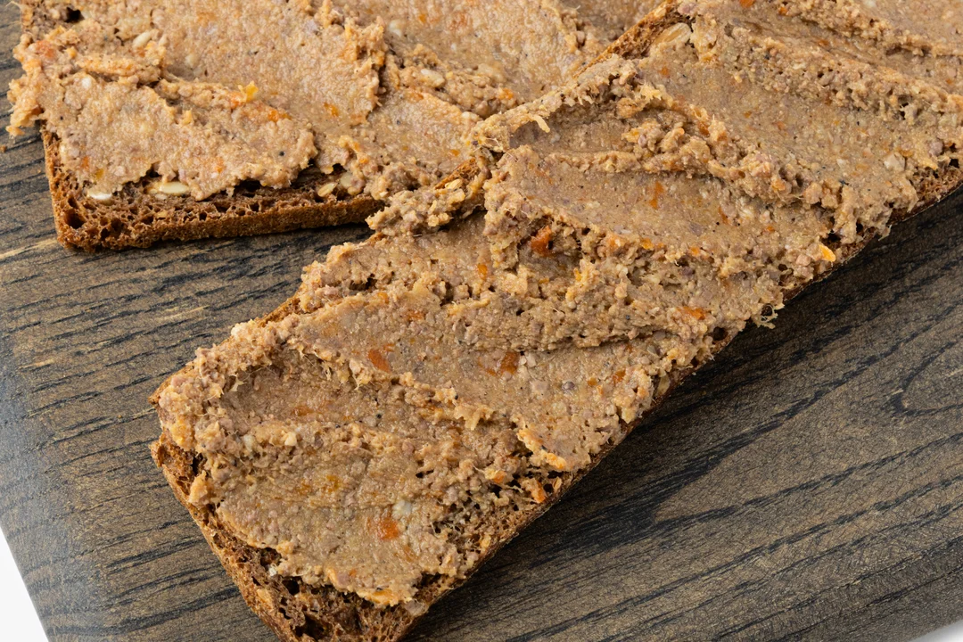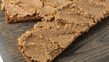 Домашний паштет с добавлением сливочного масла. Свиная и говяжья печень в сочетании с сушёной морковью и жареным луком дают мягкий, сбалансированный вкус с лёгкой сладковатой ноткой. Консистенция нежная, хорошо намазывается на хлеб, тосты или гренки. Такой паштет подойдёт для завтрака или сытного перекуса