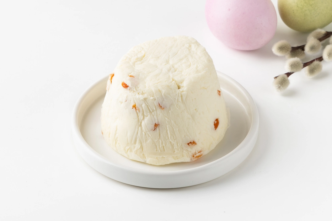Наша пасха приготовлена из свежего творога. В составе — только натуральные ингредиенты, без консервантов и ароматизаторов. Идеальный десерт на двоих.