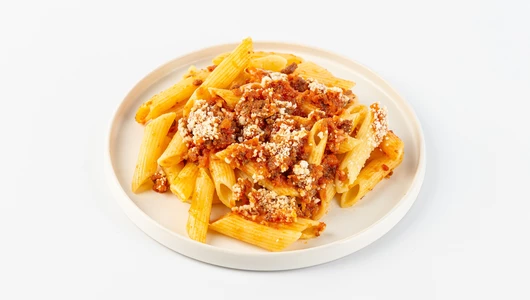Традиционное блюдо итальянской кухни. Паста с кусочками сочной говядины, обжаренными с луком в густом томатном соусе. Свежий базилик придаёт блюду терпкий колорит прованских трав. Завершает вкусовую композицию стружка пармезана. Полноценное обеденное блюдо, которое сохранит чувство сытости на несколько часов.