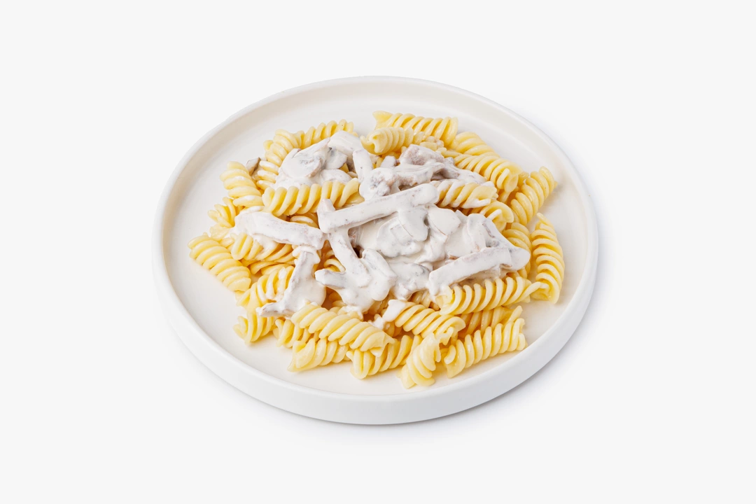 Упругие спиральки из твёрдых сортов пшеницы с обжаренными шампиньонами и ломтиками ветчины — это простое и сытное блюдо итальянской кухни. Сливочный соус обволакивает завитки, делая их особенно нежными. Разогрейте пасту в микроволновой печи, и она снова станет горячей и аппетитной. Её можно подать с листовым салатом или добавить рубленую зелень для лёгкого свежего акцента. Такой вариант подойдёт для обеда на работе или спокойного вечера дома, когда хочется отвлечься от дневных забот и насладиться любимыми вкусами.
