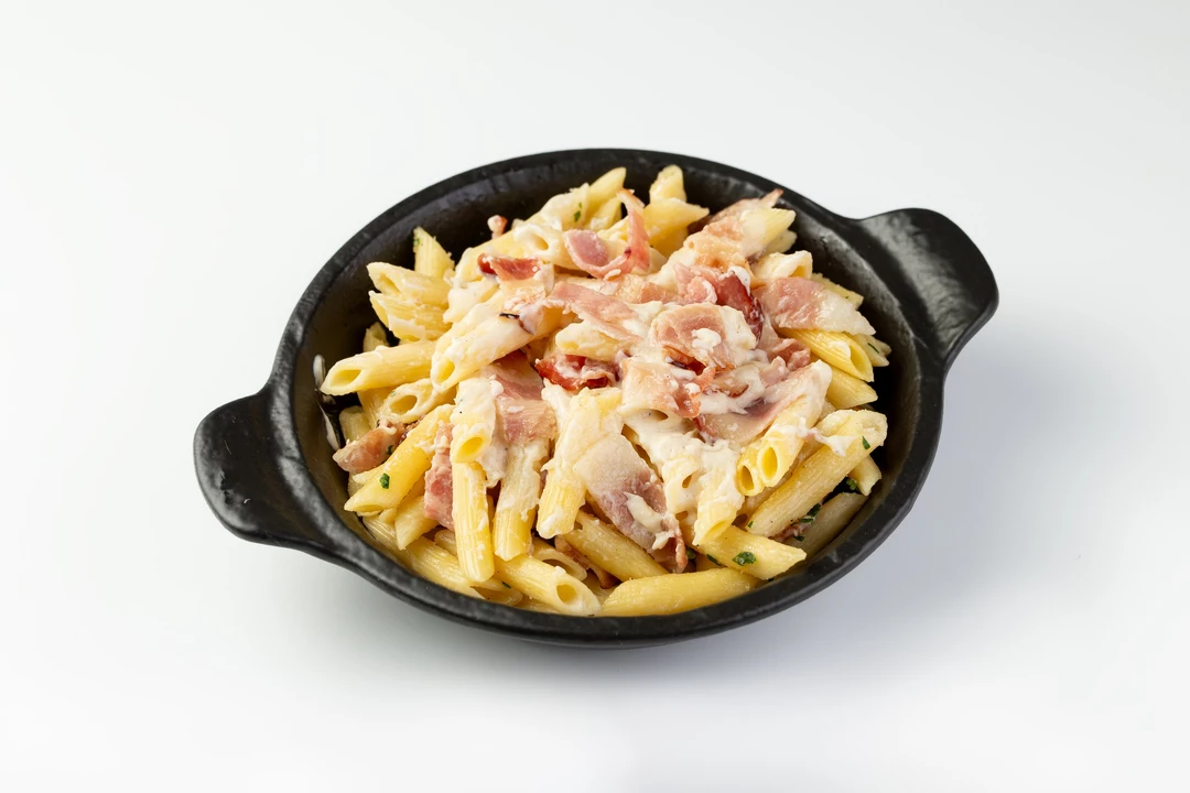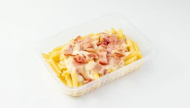 Изысканная классика в удобном формате доставки. Паста пенне в соусе Карбонара с беконом - это идеальное сочетание макарон из твердых сортов пшеницы и нежного обволакивающего соуса. Основу блюда составляет сытный соус на базе домашнего Бешамеля, дополненный натуральными сливками, молоком и щепоткой мускатного ореха для глубокого сливочного вкуса. Главный акцент - ломтики сырокопченого бекона, которые отдают соусу свой деликатный копченый аромат. Пикантность блюда подчеркивают нотки сушеного чеснока и молотого черного перца, а свежая петрушка добавляет финальный яркий штрих.