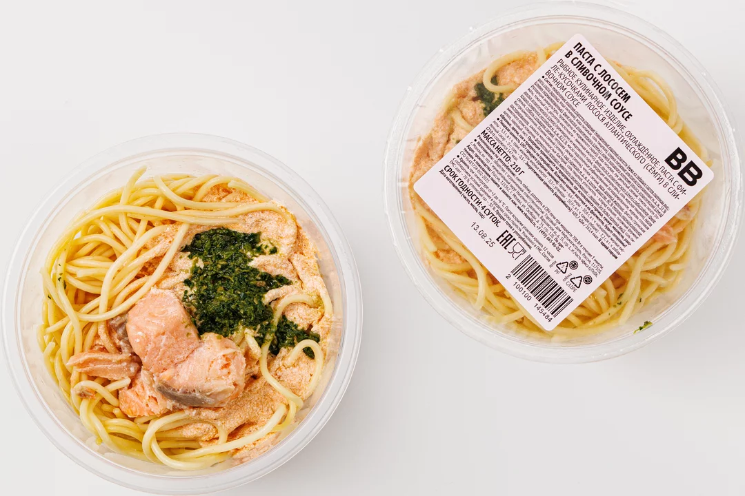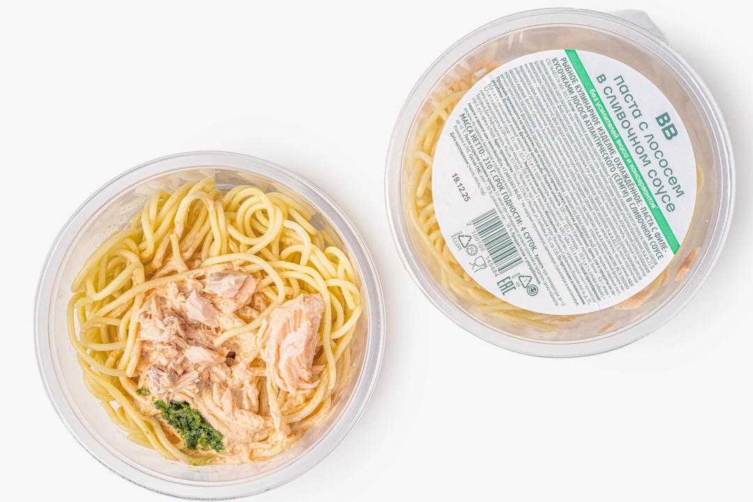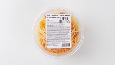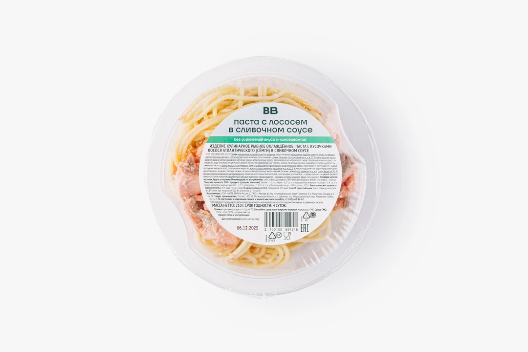 Меркатор ООО/Торговый Дом Нефтьмагистраль ООО: макаронные изделия спагетти (мука из твёрдых сортов пшеницы высшего сорта (крупка), вода питьевая), сливки м.д.ж. 33%, филе лососёвых рыб (Salmonidae) с кожей холодного копчения (продукт аквакультуры (произведено из мороженого сырья)), вода питьевая, лук репчатый свежий, томаты пилати (помидоры в собственном соку, соль пищевая, регулятор кислотности – лимонная кислота), филе лососёвых рыб (Salmonidae) с кожей слабосолёное (филе лососёвых рыб (Salmonidae) с кожей (продукт аквакультуры (произведено из замороженного сырья), соль пищевая морская), масло сладкосливочное несолёное м.д.ж. 82,5%, масло подсолнечное рафинированное дезодорированное, морковь столовая свежая, сельдерей свежий (стебель), зелень петрушки свежая, чеснок свежий, ядра арахиса жареные, фасоль стручковая целая быстрозамороженная, зелень свежего базилика, сыр пармезан м.д.ж. в сухом веществе 41% (молоко нормализованное пастеризованное, закваска молочнокислых бактерий, соль пищевая, уплотнитель – хлорид кальция, сычужный фермент животного происхождения, ферментный препарат животного происхождения – лизоцим), соль пищевая, лист лавровый сухой. Продукция производится на предприятии, где используются аллергены: горчица, кунжут, моллюски, ракообразные, орехи, соя, яйца. МОРЕ МИРА ООО: макаронные изделия спагетти (мука из твёрдых сортов пшеницы высшего сорта (крупка), вода питьевая), сливки пастеризованные м.д.ж. 33%, форель радужная холодного копчения (произведено из мороженого сырья, соль пищевая), вода питьевая, лук репчатый свежий, томаты пилати (томаты, томатный сок, соль пищевая, регулятор кислотности – лимонная кислота), филе лосося атлантического (сёмга) слабосолёное (филе лосося атлантического (сёмга) (произведено из мороженого сырья), соль пищевая морская), масло сладкосливочное несолёное м.д.ж. 82,5% (сливки пастеризованные), масло подсолнечное рафинированное дезодорированное, морковь столовая свежая, сельдерей свежий (стебель), зелень петрушки свежая, чеснок свежий, ядра арахиса жареные, фасоль стручковая целая быстрозамороженная, зелень свежего базилика, сыр пармезан м.д.ж. в сухом веществе 41% (молоко нормализованное пастеризованное, закваска молочнокислых бактерий, соль пищевая, уплотнитель – хлорид кальция, сычужный фермент животного происхождения, ферментный препарат животного происхождения – лизоцим (из белка куриного яйца)), соль пищевая, лист лавровый сухой. Возможно наличие косточек, будьте осторожны!