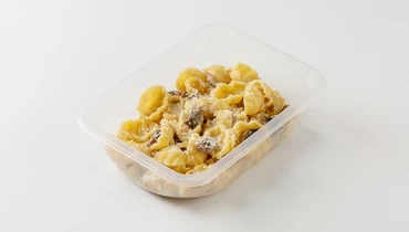 Это нежная паста из твёрдых сортов пшеницы в сочетании с ароматным грибным соусом. Блюдо получается сытным и лёгким благодаря сбалансированному составу. Белые грибы и шампиньоны создают насыщенный вкус, дополненный нотами трюфеля. Лук, обжаренный на оливковом масле, добавляет сладковатый оттенок, а тёртый пармезан — солоноватость. Густые сливки делают заправку кремовой, а перец — слегка пикантной. Блюдо оценят поклонники итальянской кухни без сложной готовки, оно доступно только для самовывоза из офлайн-точек Сгоряча и приедет к вам горячим и готовым к подаче. Его тоже можно выбрать Любимым продуктом и покупать со скидкой.