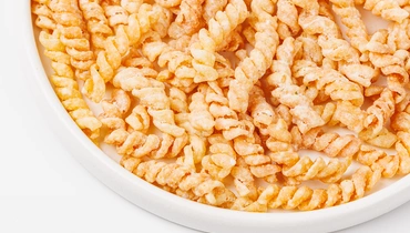 Эта паста вас точно удивит, ведь она очень напоминает чипсы. Хрустящие, приятно солоноватые, с ярким сливочно-сырным вкусом, эти фузилли отлично подойдут для быстрого «перекуса» и дополнения закусочной тарелки. А ещё у снеков натуральный состав и относительно невысокая калорийность: около180 ккал на целую упаковку.