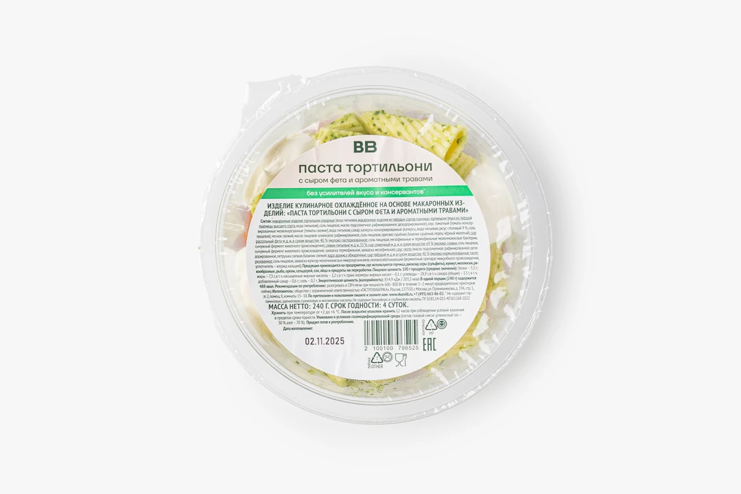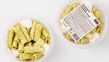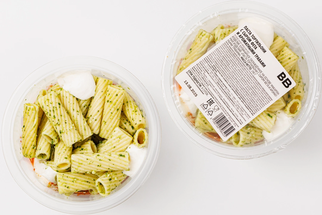 Лаконичная, но яркая паста с мягким солоноватым сыром. Для выразительного вкуса добавили два соуса: томатный с каперсами и травами, а также базиликовый с обжаренным арахисом.